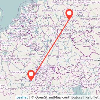 Strecke von Genf nach Schönebeck