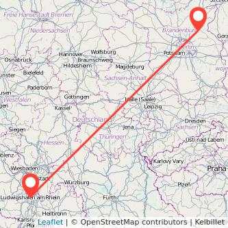 Strecke von Ludwigshafen nach Eberswalde