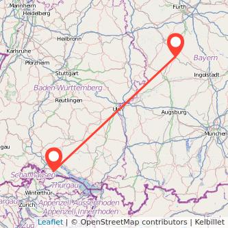 Strecke von Radolfzell am Bodensee nach Treuchtlingen