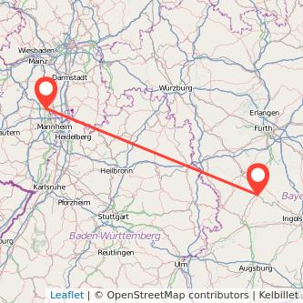 Strecke von Worms nach Treuchtlingen